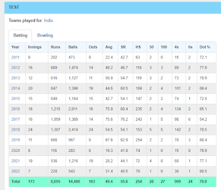 Before we get into why here is his previous year's performance by cricmetric in respective formats: